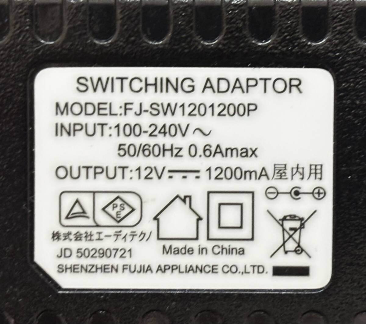 【株式会社エーディーテクノ】FJ-SW1201200P  ACアダプター 12V 1.2A (外径 φ5.5mm) の出品です。