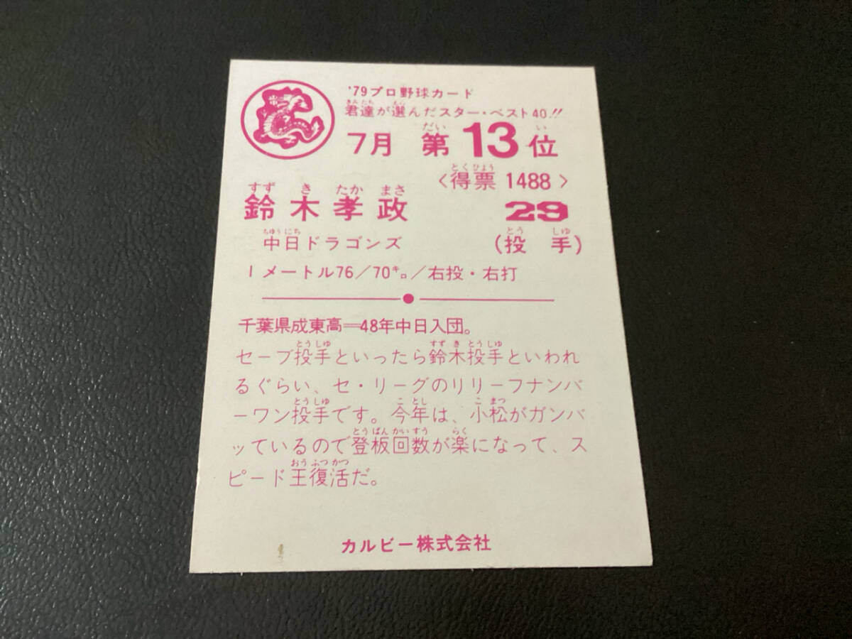 良品 カルビー79年 鈴木(中日)7月第13位 プロ野球カード