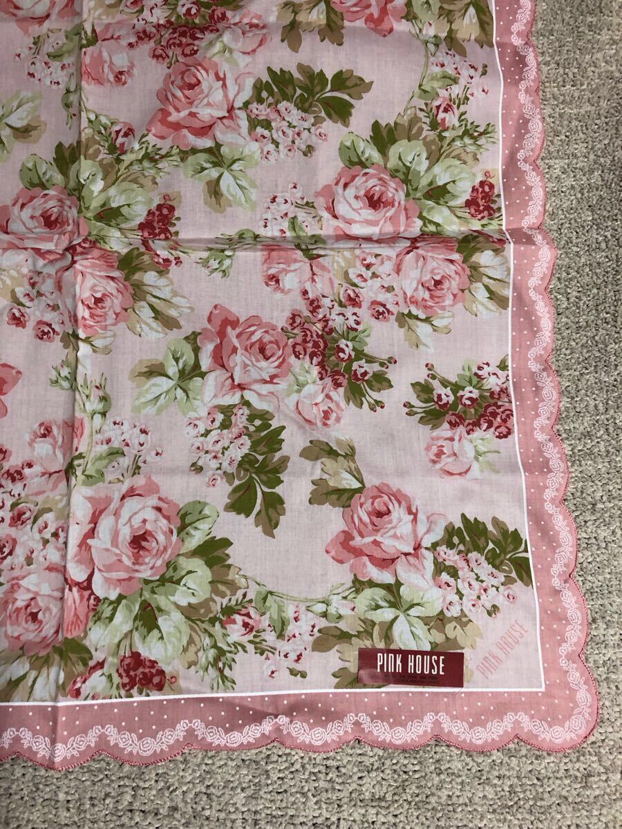 人気!!オシャレ!!おそらく未使用品!!日本製生地使用!!縫製中国製!!PINK HOUSE/ピンクハウス/バラx小バラ花柄/ハンカチとなります。