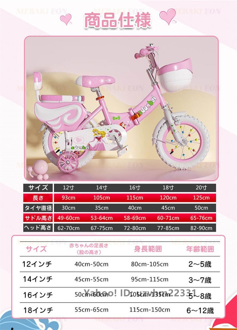 Product name: 【特売品 タイプBピンク 16寸サイズ】幼児用自転車子供用自転車 折り畳み 幼児用自転車 男の子 女の子にも 高さ調節可能