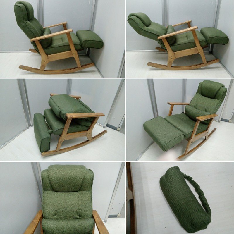 Product name: メーカー不明 ロッキングチェア ロッキング チェア 足乗せ グリーン系
