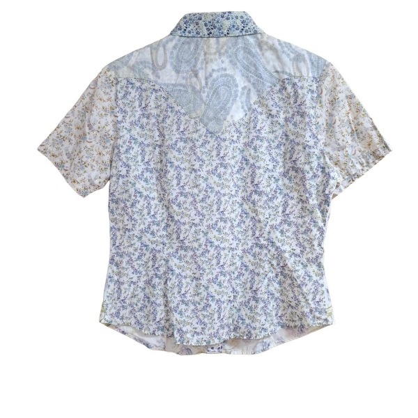 Product name: スキャパ Scapa 半袖シャツブラウス サイズ38 L - 白×ネイビー×マルチ レディース 花柄 トップス