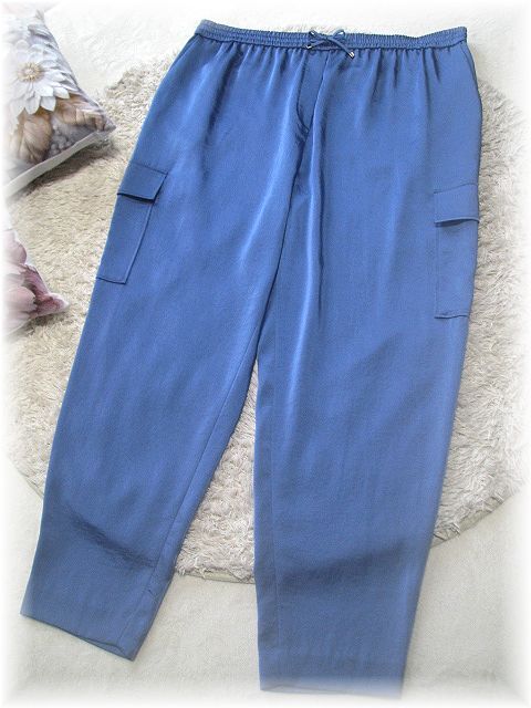 Product name: 送料無料*iCB*大きいサイズ48(19号)*光沢サテン素材イージーカーゴパンツ/ウエストドロストゴム仕様/ウォッシャブル/ブルー