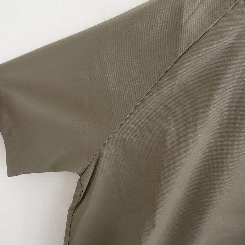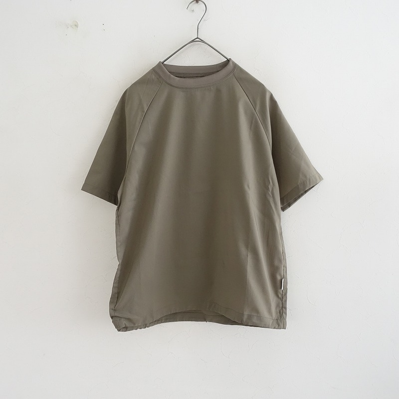 2025年春夏コレクション Freak’s StoreのAiRide クルーネック半袖プルオーバーです。カラーはグリーンカーキ(ブランド表記カラーはグレージュ)で、薄手の機能性ポリエステル素材(AiRide)です。プルオーバータイプで着脱でき、襟ぐりはリブ仕様で、裾にはゴムコードが通っております。