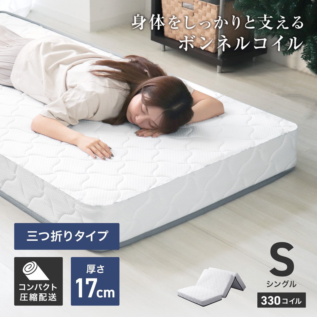 3つ折りマットレス シングル 高密度ボンネルコイル 厚さ17cm マットレス ボンネルコイル スプリングマットレス ベット 布団 新品 未使用