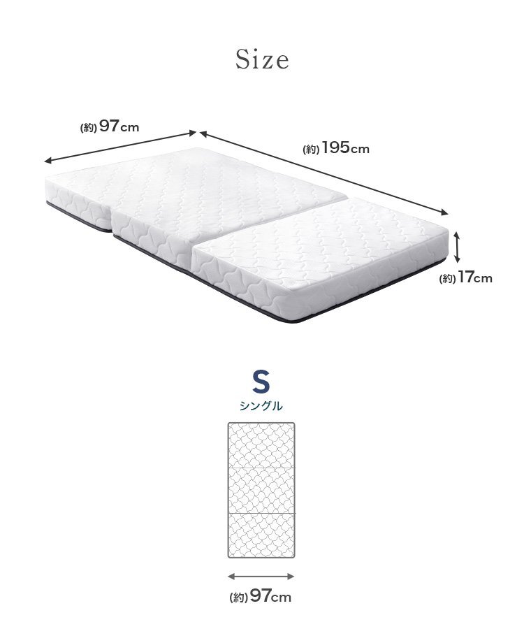 サイズ:(約)幅97cm×長さ195cm×厚み17cm(シングルサイズ)
