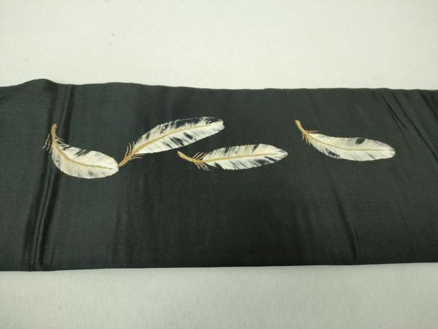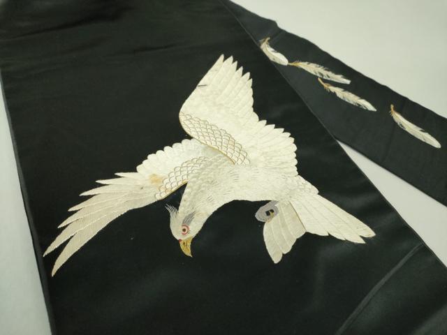 Product name: 平和屋着物●アンティーク 大正ロマン 九寸名古屋帯 総刺繍 白鷹 黒地 金糸 正絹 逸品 DAAU5305ps