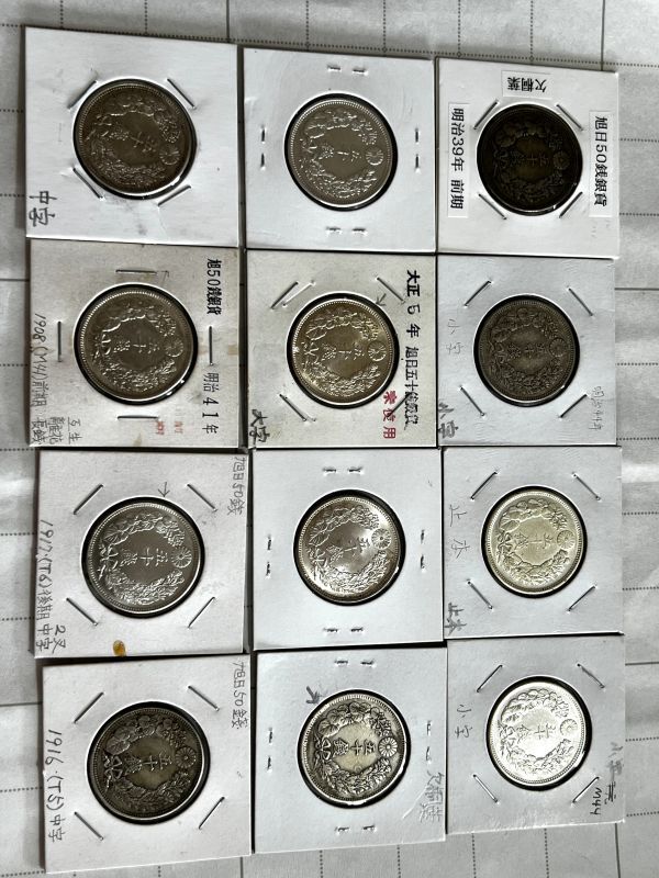 Product name: ケ7-40 旭日50銭銀貨 明治39年前期欠桐葉 明治44年小字 止本 大正5年大字未使用 中字 明治41年互生離花長銭 大正6年後期中字2又 コレクター