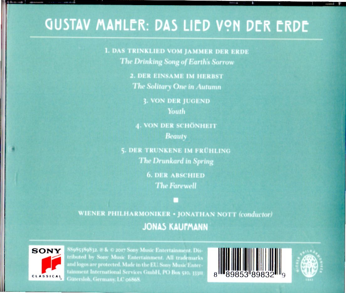 マーラ/ 交響曲「大地の歌」/ ジョナサン・ノット指揮;ヨナス・カウフマン他;ウィーンフィルです。