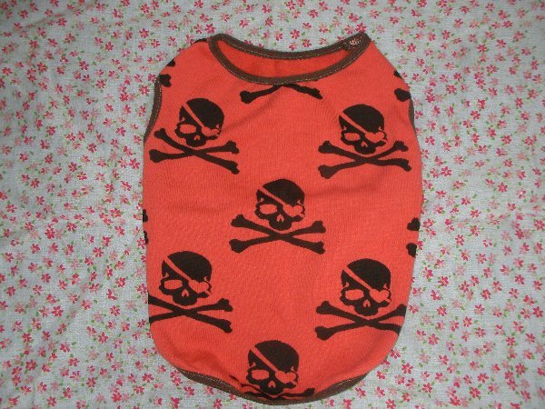 ハンドメイド☆犬服☆小型犬☆タンクトップ☆Tシャツ☆ドクロ☆レンガ色にドクロのプリント模様☆タンクトップ☆C☆