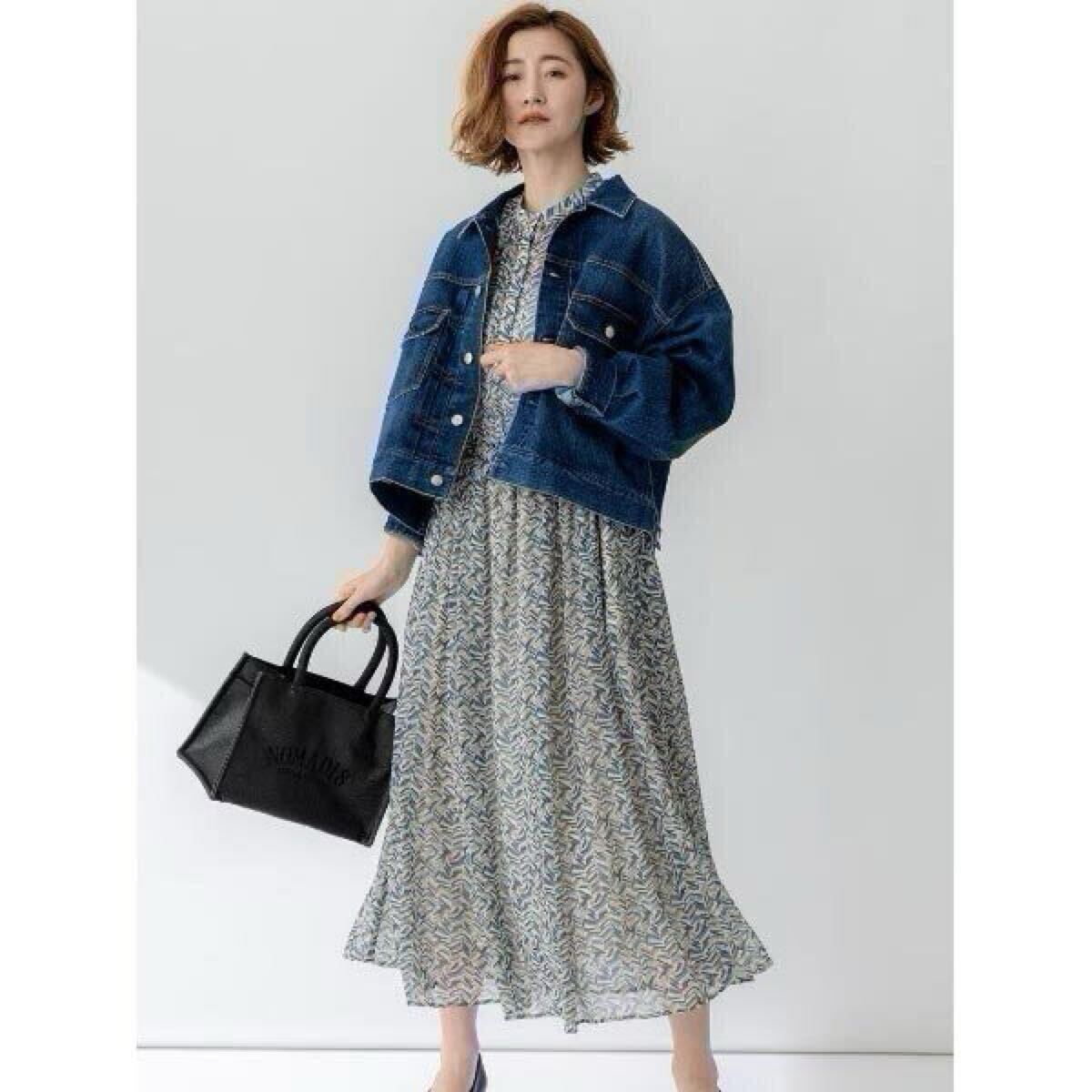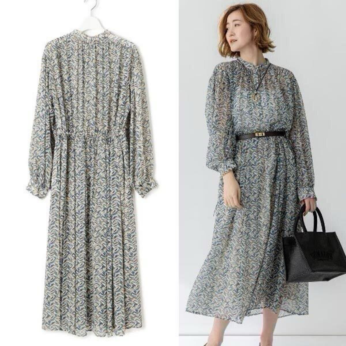 Product name: 23区【洗える】シアーヘリンボーンプリント ワンピース Mサイズ・38・青系・新品