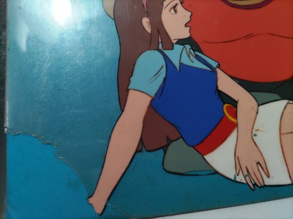 セル画と下の紙に貼りつきあります、セル画左下に破れあります、制作の現場で使用されたセル画につき、線のかすれ、塗装の剥げ、汚れなどある場合があります。ほとんどのセル画で下の紙や、動画に張りついています、ひどい欠点がありましたら、記載します。中古品につき、やけ、折れ、汚れある場合あります。梱包にリサイクル素材を使用しています。細部こだわられる方入札お控えください。送料、ゆうパケット250円、