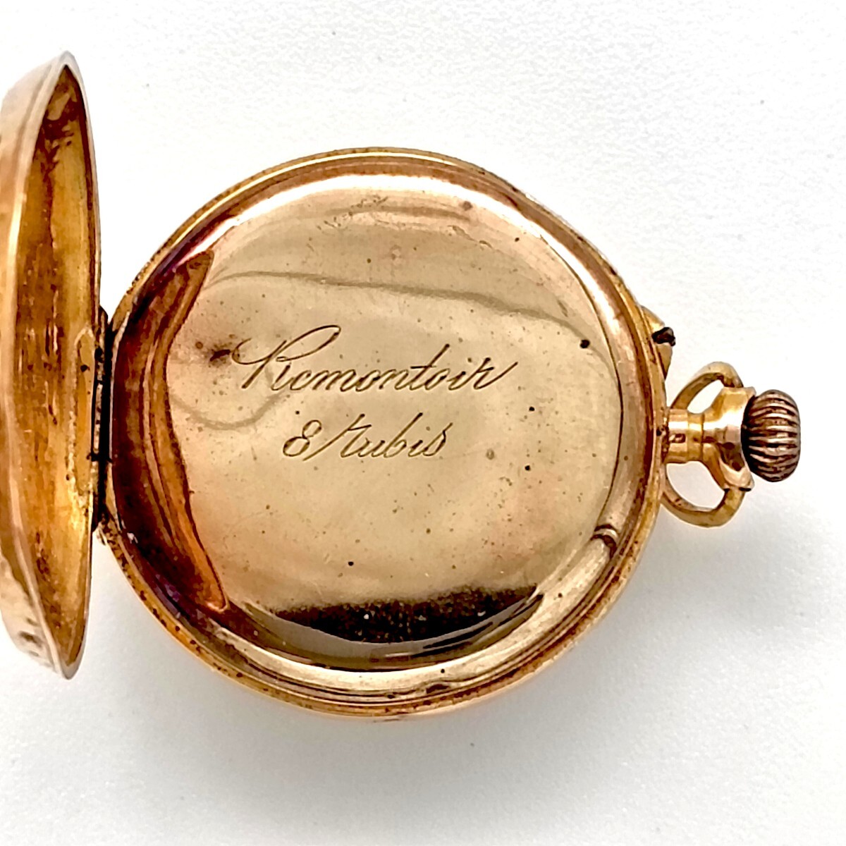 【W0056】18K金 懐中時計 手巻き 花文彫刻 機械式 古美術品 古玩 骨董品 アンティーク ビンテージ 可動品 直径約26.8mm 重さ約16.2g ヘコ有