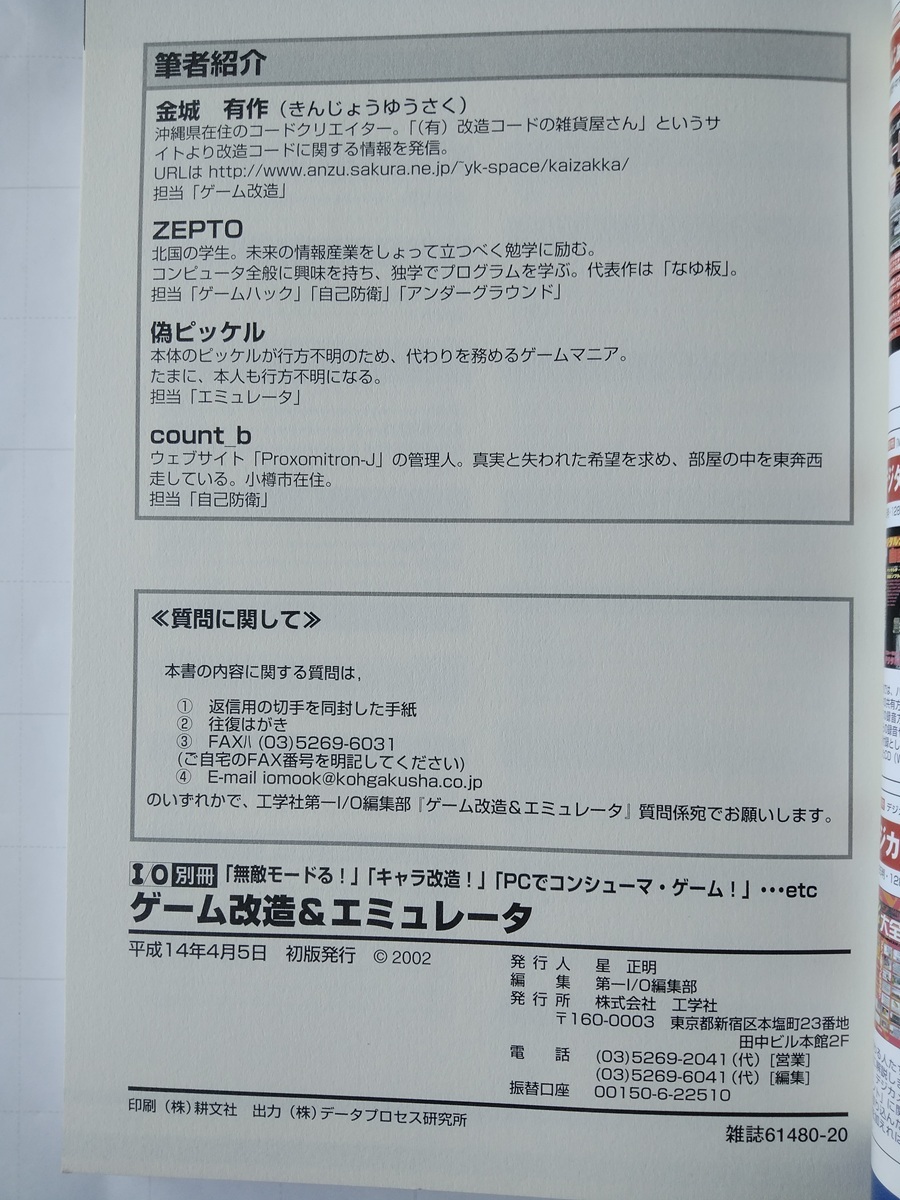 Product name: I/O別冊 ゲーム改造&エミュレータ