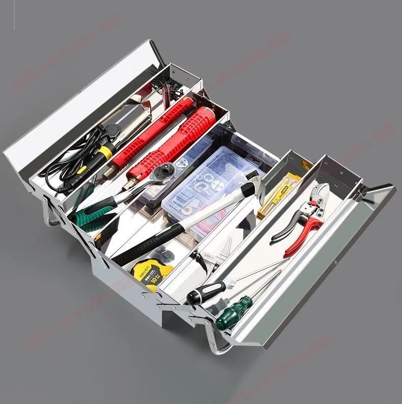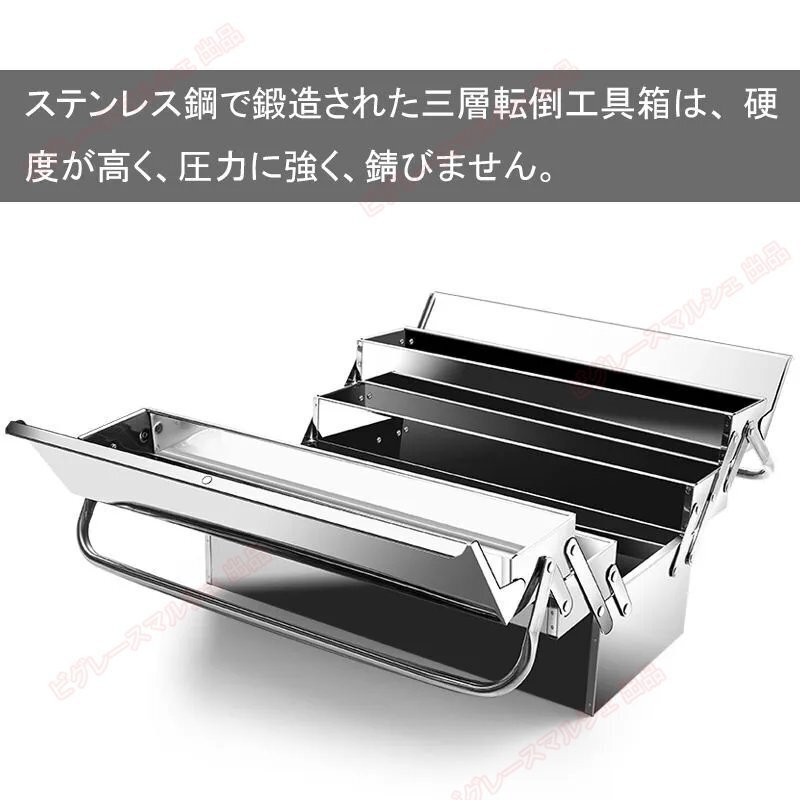 ★ステンレス鋼で鍛造された三層転倒工具箱は、硬度が高く、圧力に強く、錆びません。