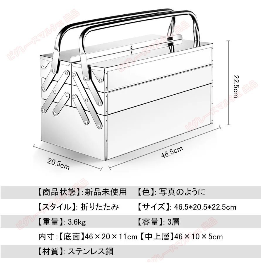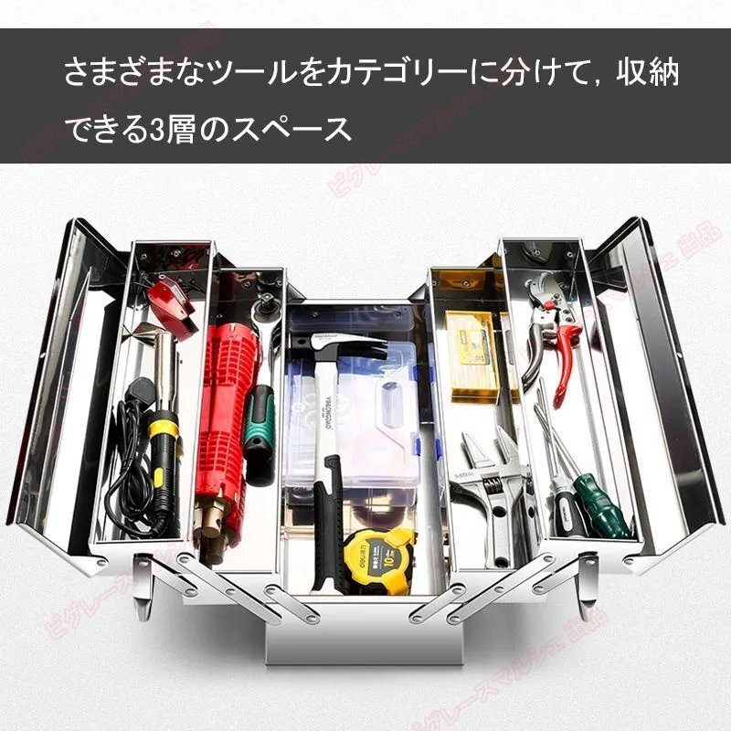 Product name: 工具箱 大型 ステンレス ツールボックス 工具入れ 三層収納折りたたみツールボックス 鍵穴付き トラック 荷台 収納 工具ボックス