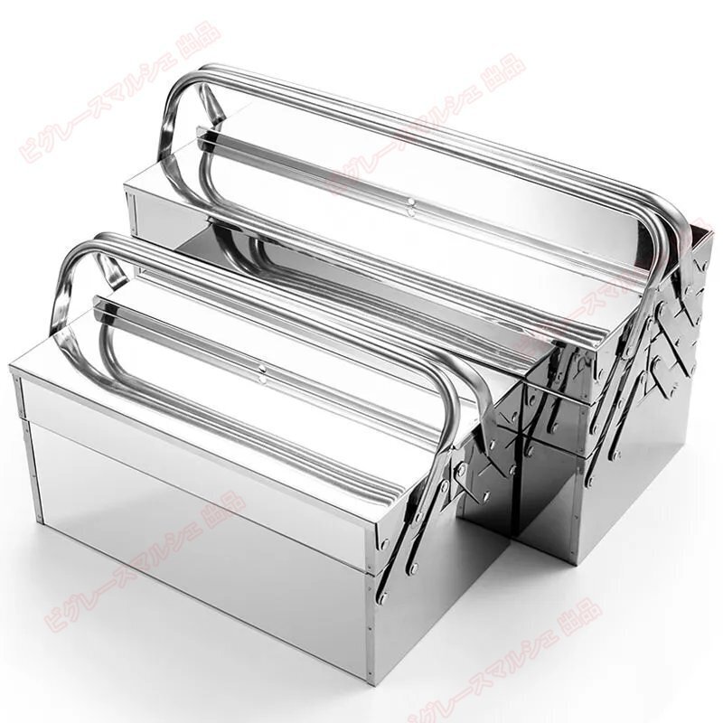 ★ツールラックや保管箱として使える大型のステンレス製三層折りたたみツールボックスです。
