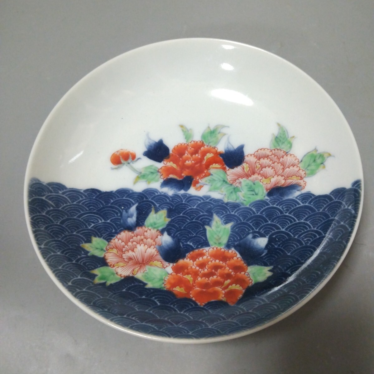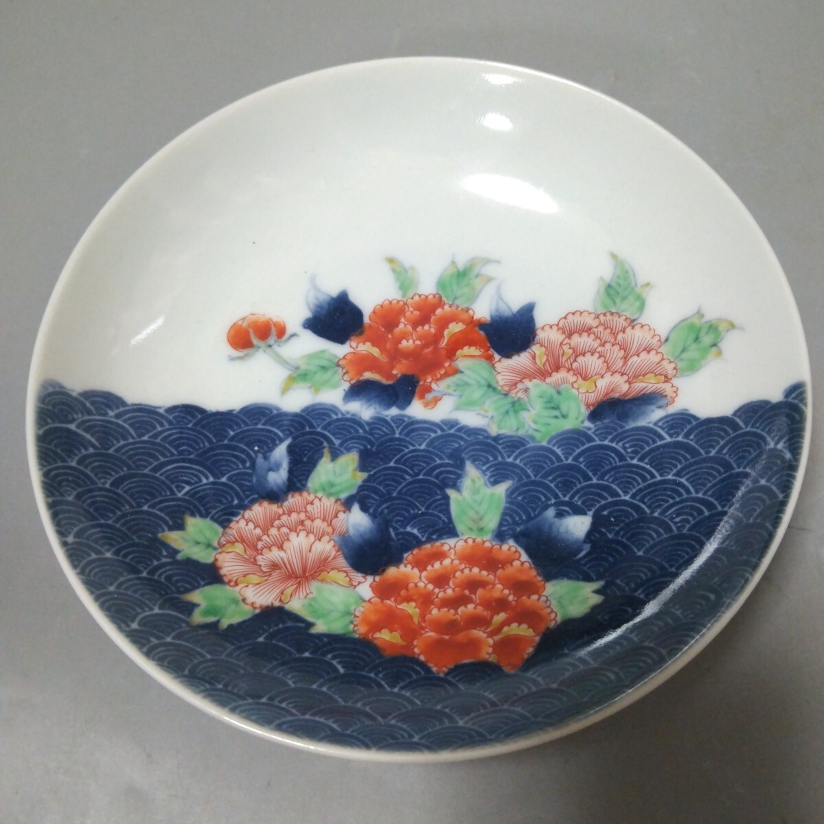 Product name: 色鍋島青海波に牡丹図小皿 江戸後期 金彩
