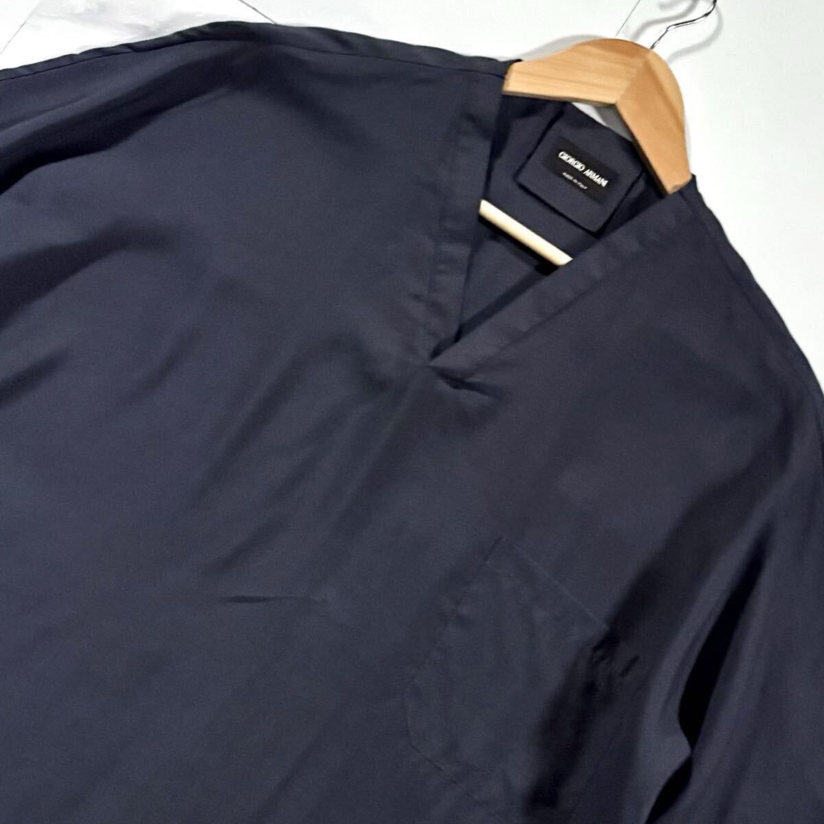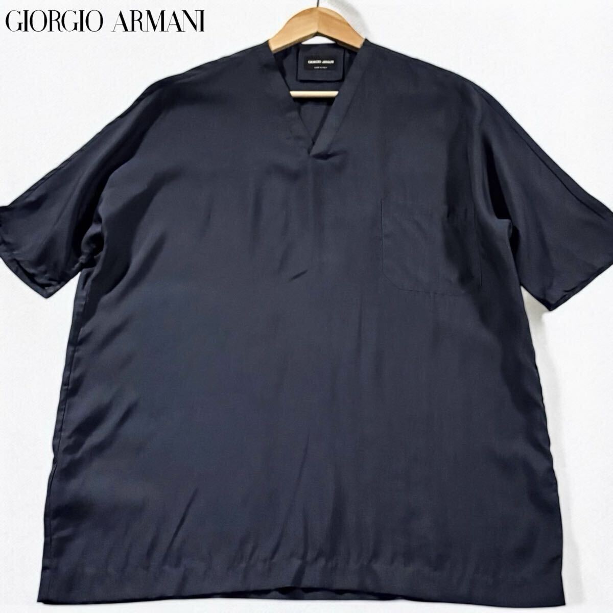 Product name: 極美品/XLサイズ●最高極 GIORGIO ARMANI 和風 シルク混 作務衣風 半袖シャツ Vネック Tシャツ ジョルジオ アルマーニ 黒タグ ポケット