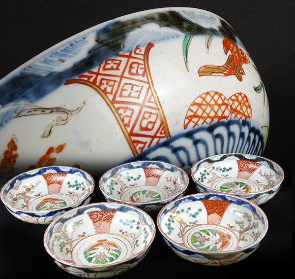Product name: D-265■伊万里焼 八寸鉢五客 松竹梅文 鶴亀図 鳳凰文