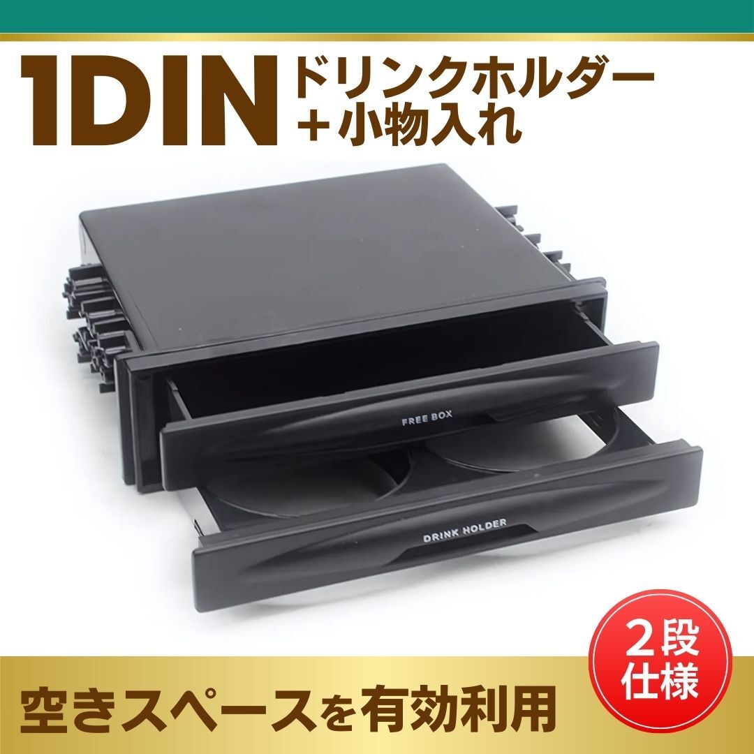 1DIN ドリンク ホルダー 小物入れ フリーボックス ケース カップ コンソール 収納 引き出し 1ディン 自動車 ジュース スタンド 2段 増設