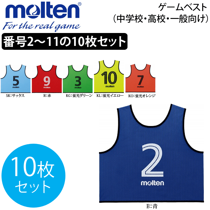 molten モルテン GS0113 バレーボール ゲームベスト/10枚セット 小物 (番号2~11) (中学校・高校・一般向け)