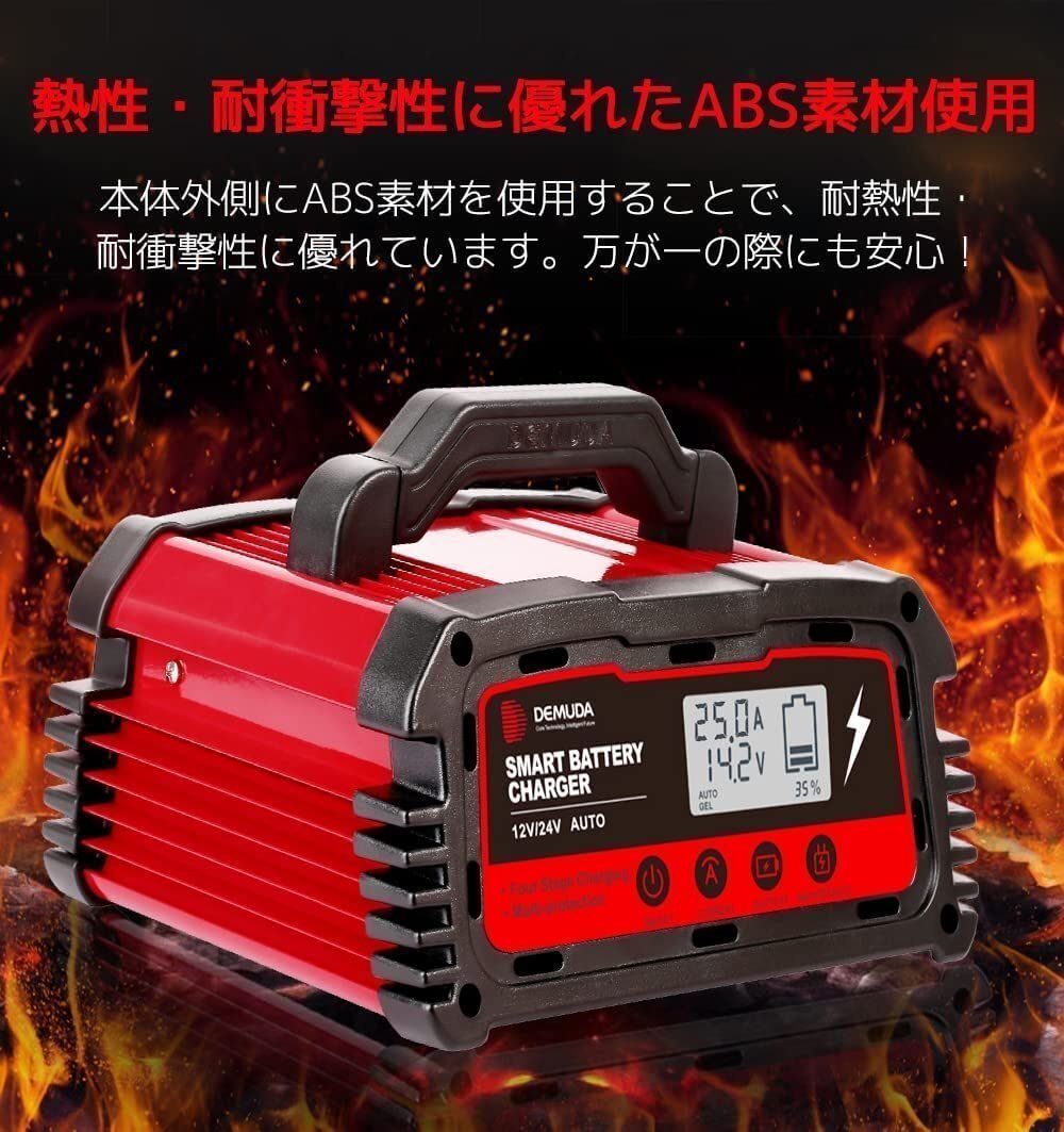 LVYUAN新品 25A 自動パルスバッテリー充電器 12V/24V 維持充電方式 バッテリー診断機能付 AGM/GEL車充電可能 自動車 緊急