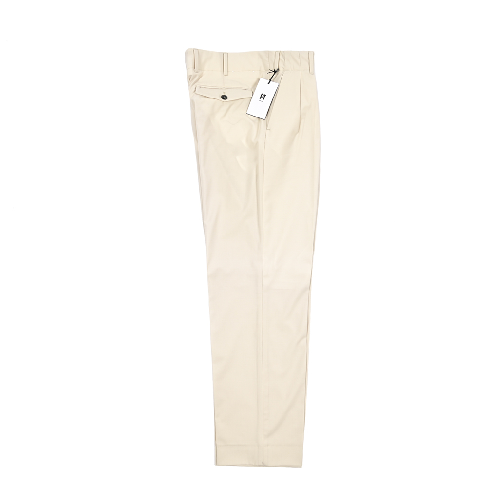 ピーティートリノ PT TORINO EDGE VENTI スラックス ツータック ストレッチ パンツ 春夏 秋 3シーズン メンズ ヴァージンウール ポリアミド ホワイト PT01