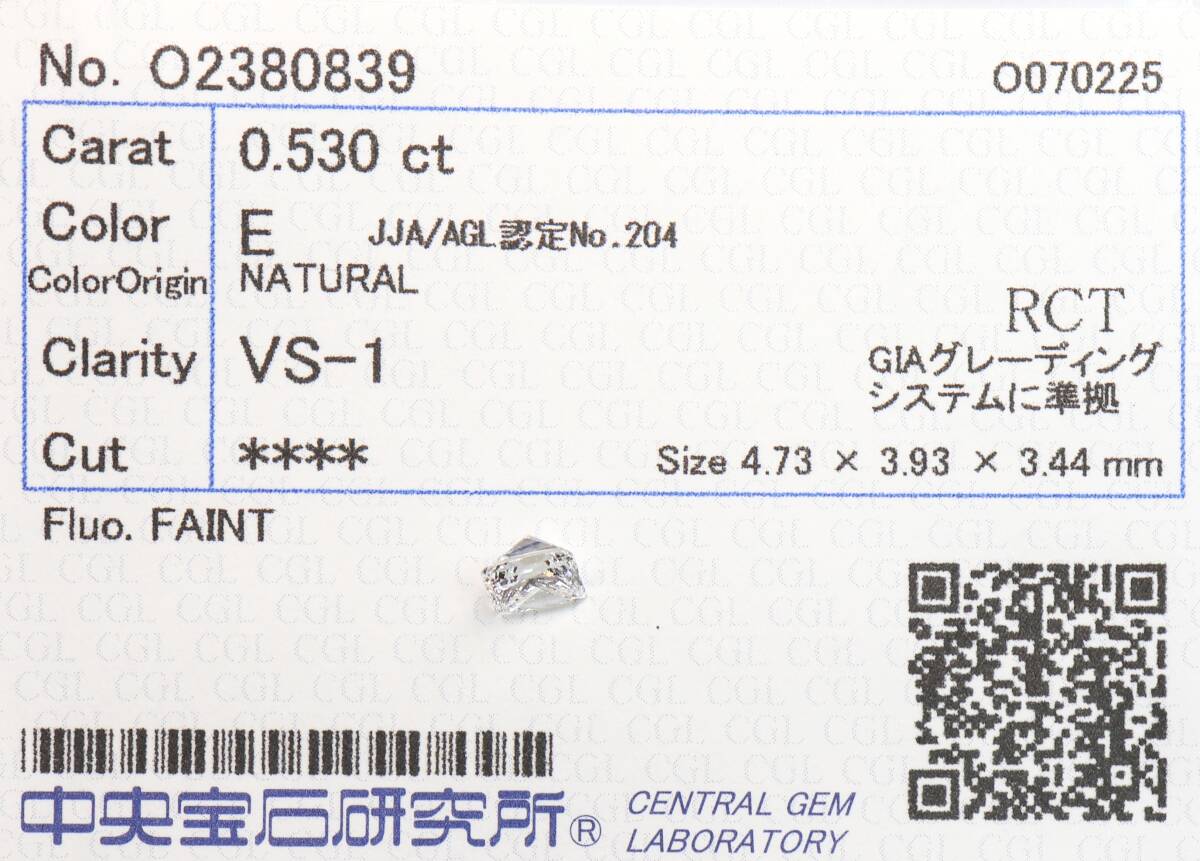 Product name: 【100円~】VS1!0.530ct 天然ダイヤ E(ナチュラルカラー)RCT