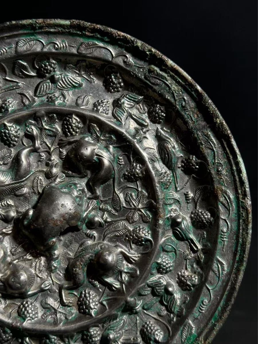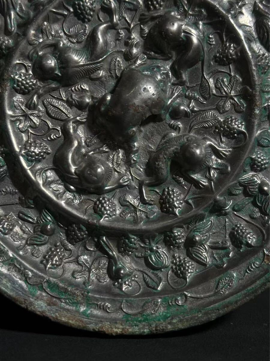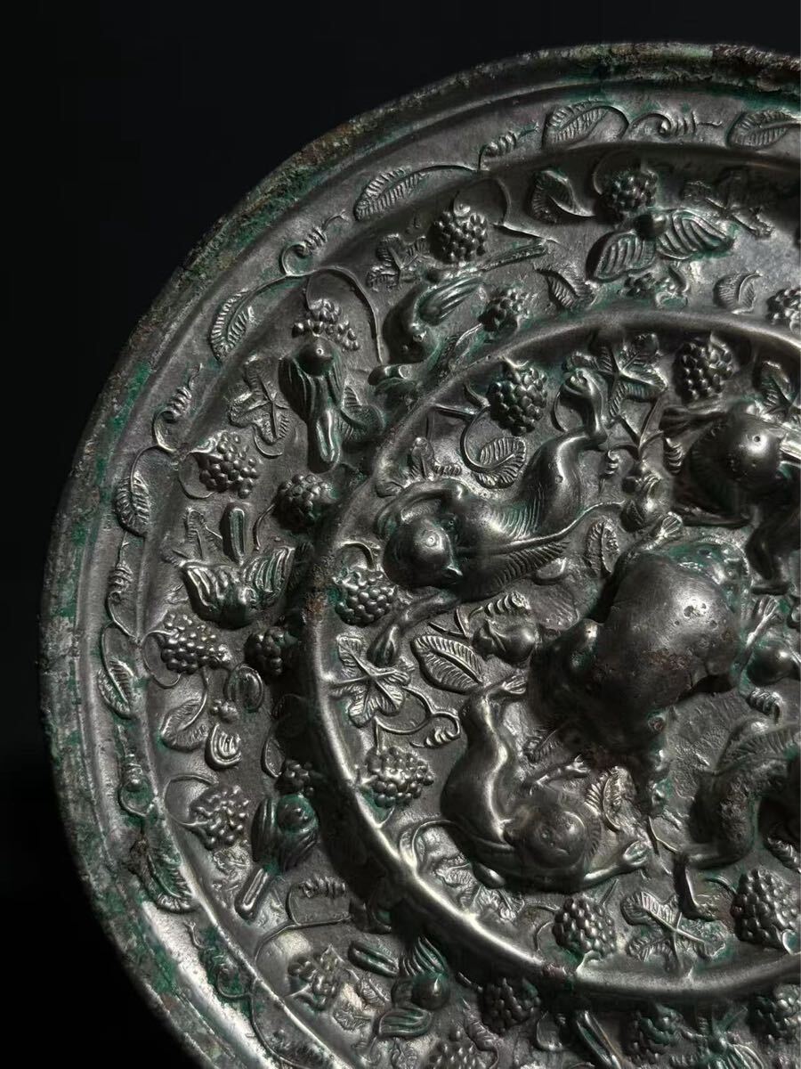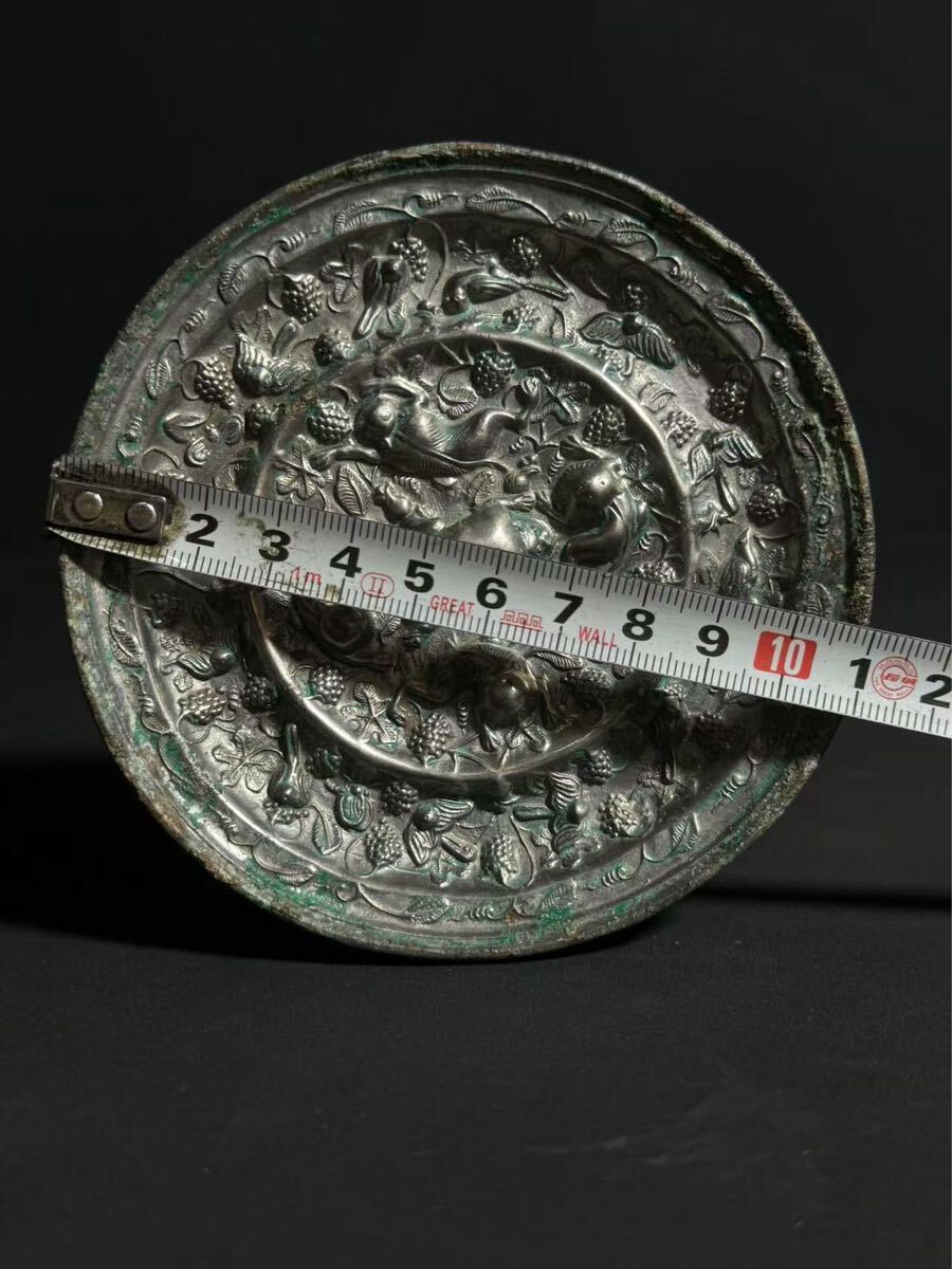 Product name: 【雅園】中国古美術 唐時代 古銅鏡 海獣葡萄紋鏡 青銅器 古玩 骨董 時代物 古美術 唐物 当時物 置物 旧家蔵出