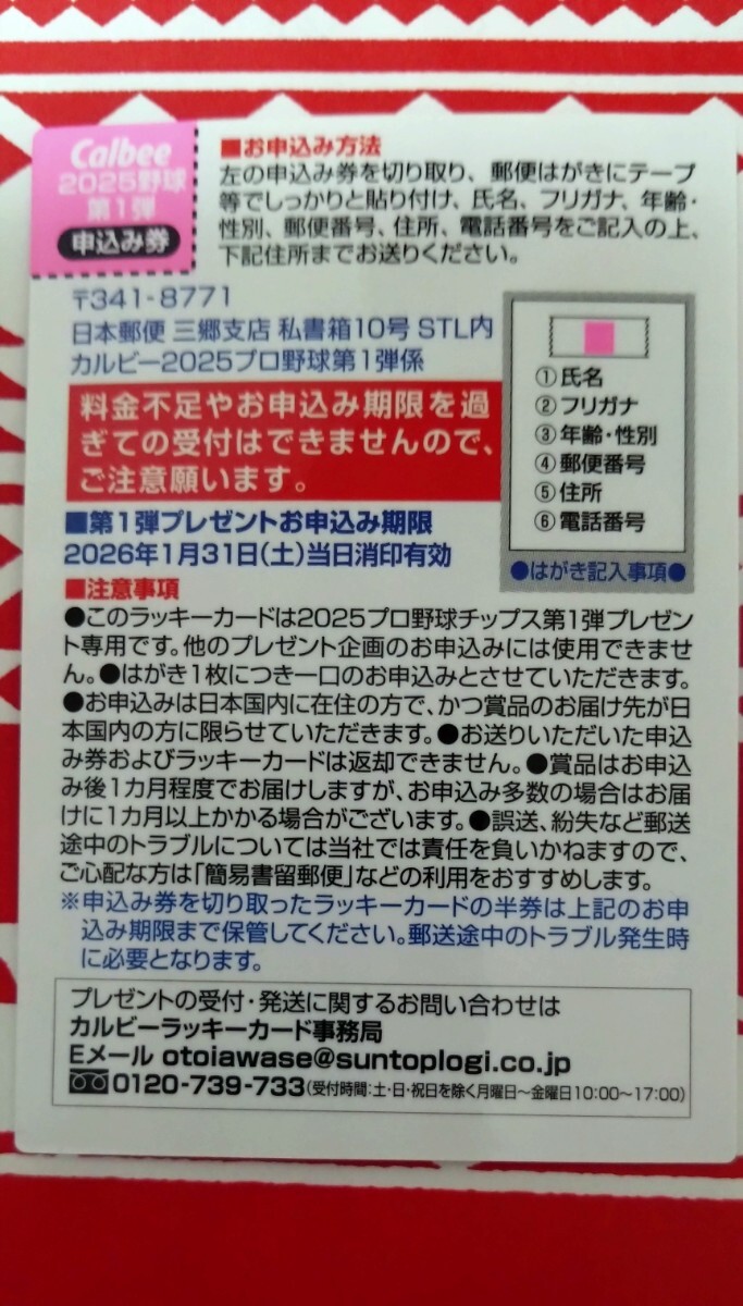 Product name: カルビープロ野球チップス2025 ラッキーカード