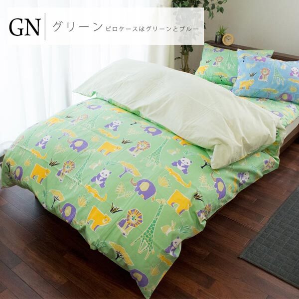 可愛い動物が一面に描かれた掛け布団カバーです。