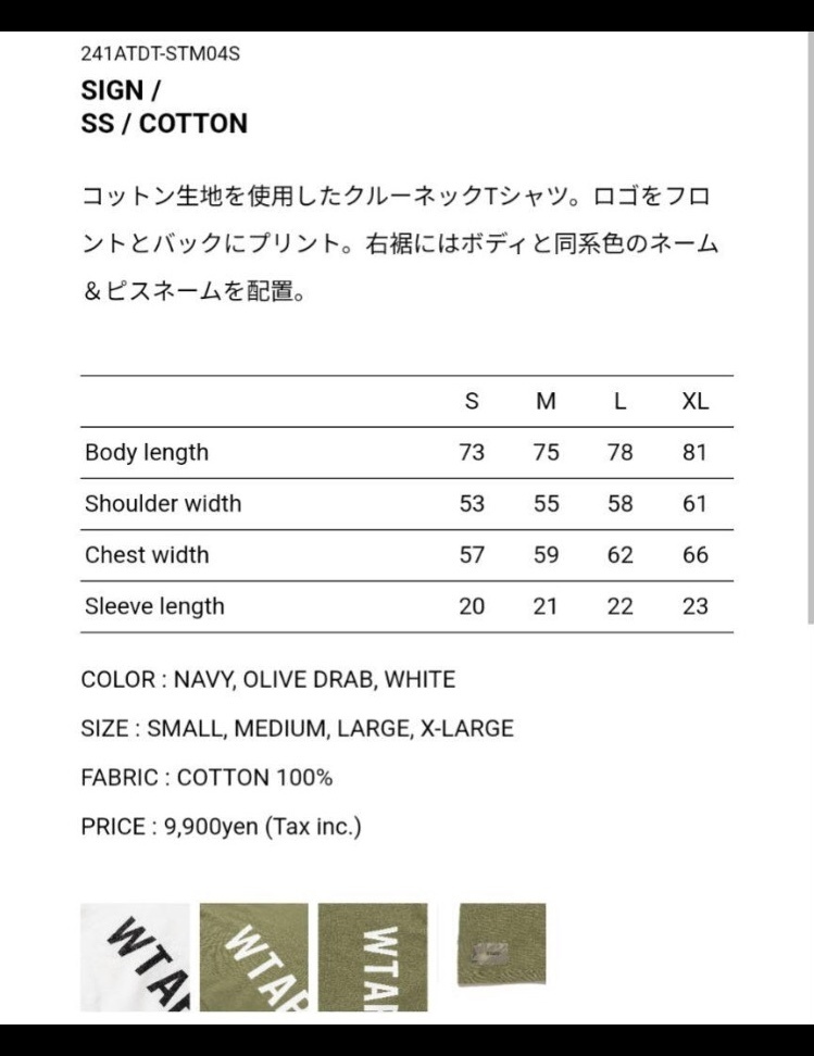 Product name: 1円〜WTAPS 24ss SIGN SS COTTON TEE OLIVE M neighborhood シャツ logo ダブルタップス Tシャツ shirt サイン drab