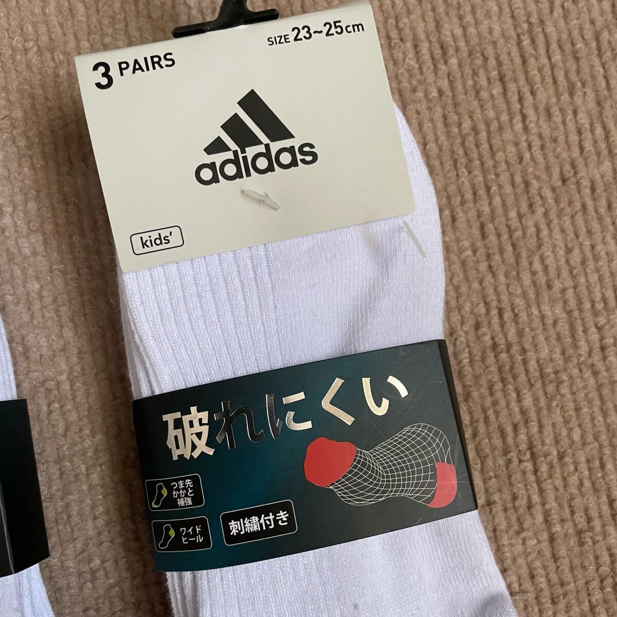 【新品未使用】 adidas アディダス 靴下 6足セット 23-25cm 白 ホワイト キッズ ボーイズ 男の子 破れにくい スクールソックス スポーツ