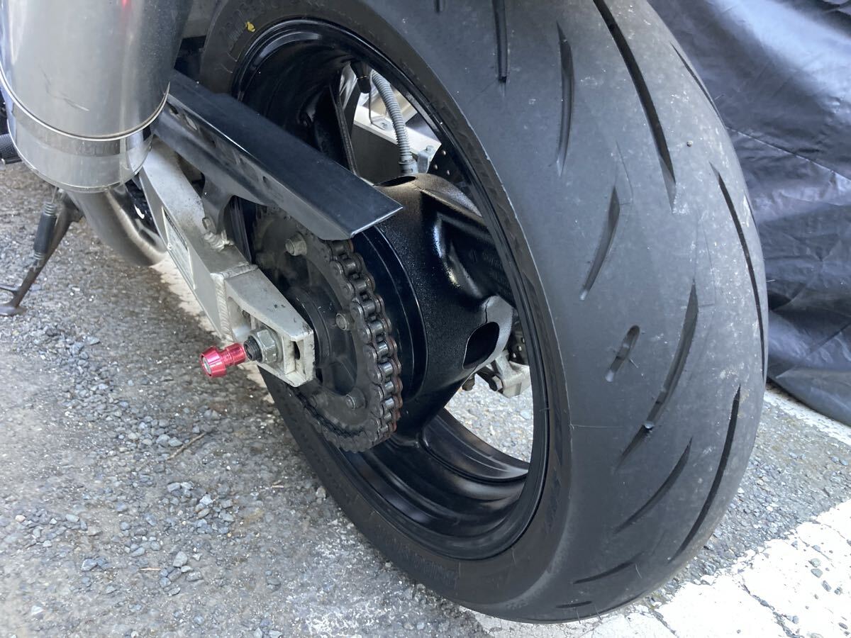 タイヤはブリヂストンのS21とS22の組み合わせで、山は8分あり。車輌との相性、グリップ感もバッチリです。