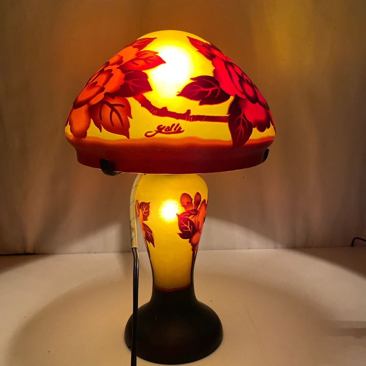 Product name: 【レトロ】 アンティーク エミール・ガレ風ランプ スタンドライト 高さ約40cm インテリア ランプ 照明 きのこ型 中古品 現状品 通電OK