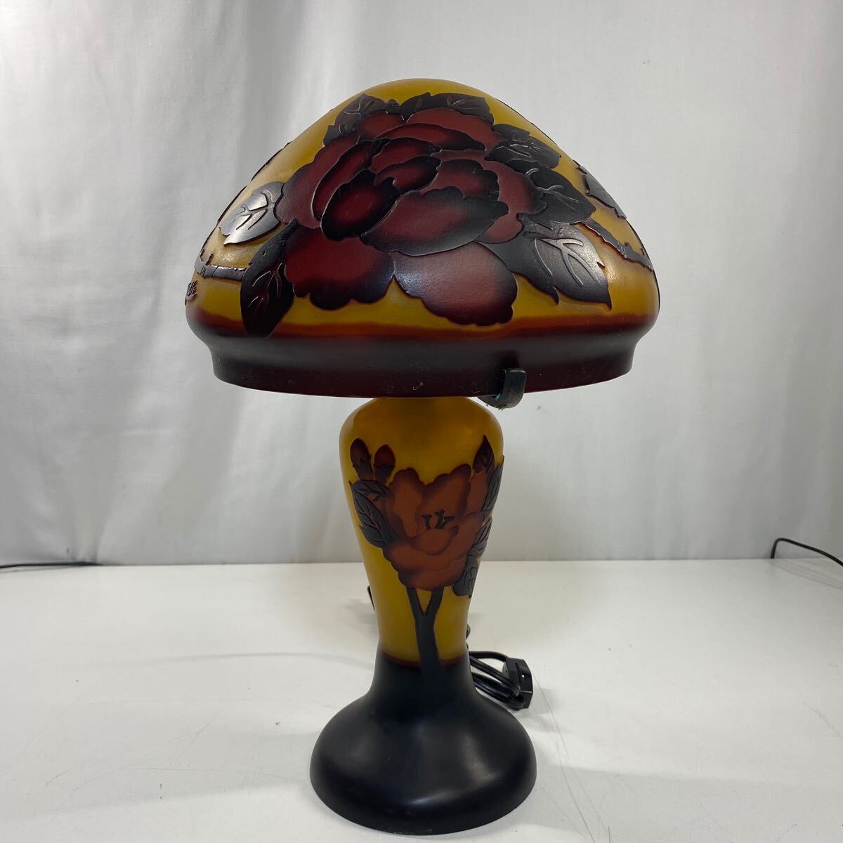 【レトロ】 アンティーク エミール・ガレ風ランプ スタンドライト 高さ約40cm インテリア ランプ 照明 きのこ型 中古品 現状品 通電OK