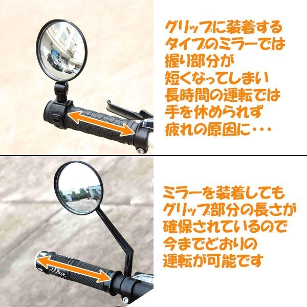 送料無料 サイドミラー 自転車用 バックミラー 広角 鏡 左右兼用 (9)