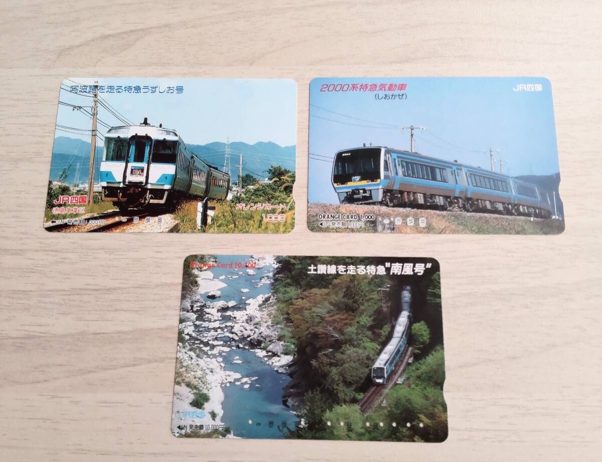 JR四国オレンジカード3枚セット(使用済み)★「うずしお」「しおかぜ」「南風」★2000系特急気動車★予讃線★土讃線★高徳線