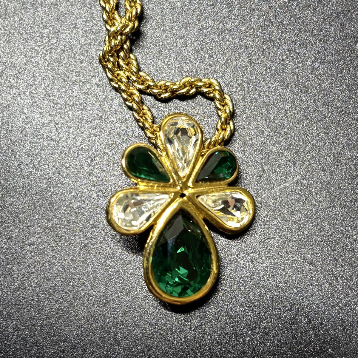 【未使用級】Yves Saint Laurent イヴサンローラン ネックレス チョーカー カラーストーン ラインストーン フラワー モチーフ デザイン