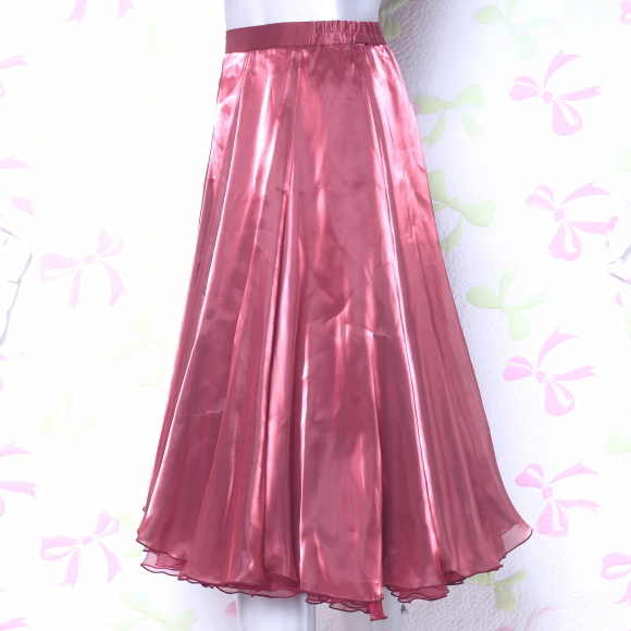 備考:光沢オーガンジー風生地と裾にオーガンジー生地の付いた裏生地使用・ウエスト両サイドにゴム使用・たっぷりの生地使用・後ろファスナー