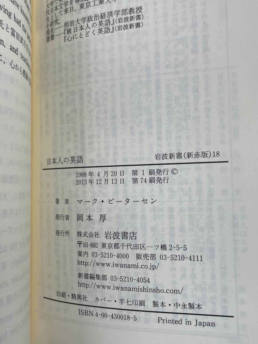 日本人の英語 岩波新書 新赤版 18 マーク・ピーターセン著 ほぼ未使用 平成25年 2013年発行