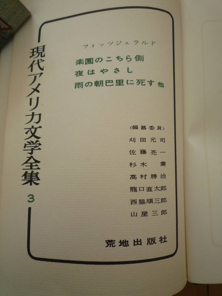 Product name: ★『現代アメリカ文學全集 3 フィッツジェラルド』楽園のこちら側、夜はやさし、雨の朝巴里に死す 他 荒地出版社★
