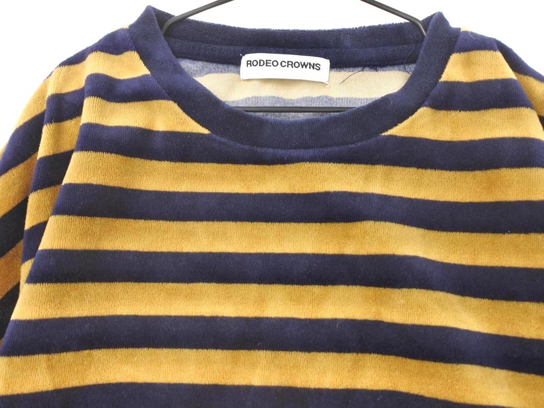 Product name: RODEO CROWNS ロデオクラウンズ ベロア ボーダー カットソー sizeF/紺 ◇■ ☆ fic6 レディース