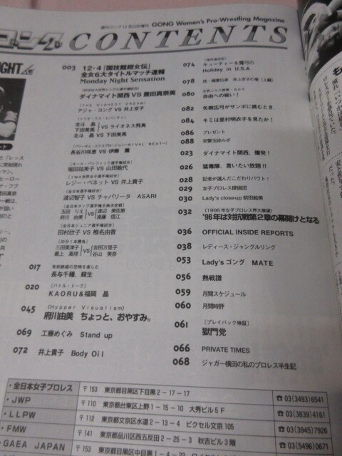 Product name: 「週刊ゴング増刊 Lady'sゴング」1995年12月 関西対豊田 工藤 貴子 府川 咲恵 長与 キューティー 尾崎 日本スポーツ出版社