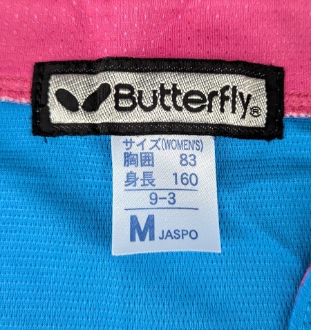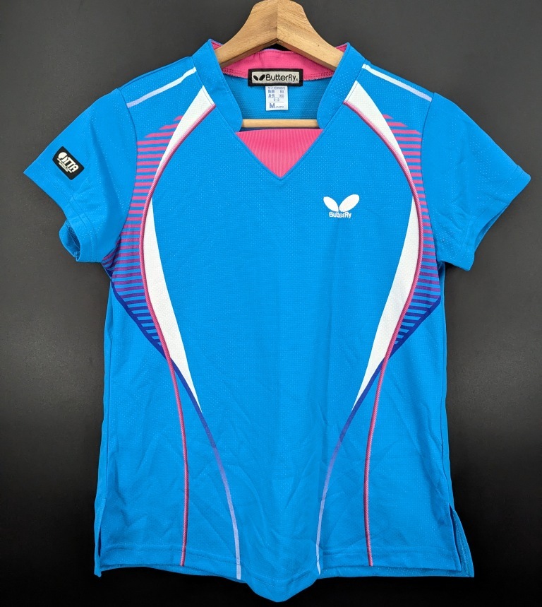 4344C 送料185円♪ BUTTERFRY バタフライ レディース 卓球 JTTA 美色 水色 ライン入り Vネック ゲームシャツ Tシャツ Mサイズ