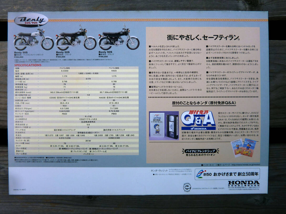 ホンダ ベンリィ 50S 90S 1998年2月 カタログ販売店スタンプなし Honda BC CD50 CD90 ベンリー Benly