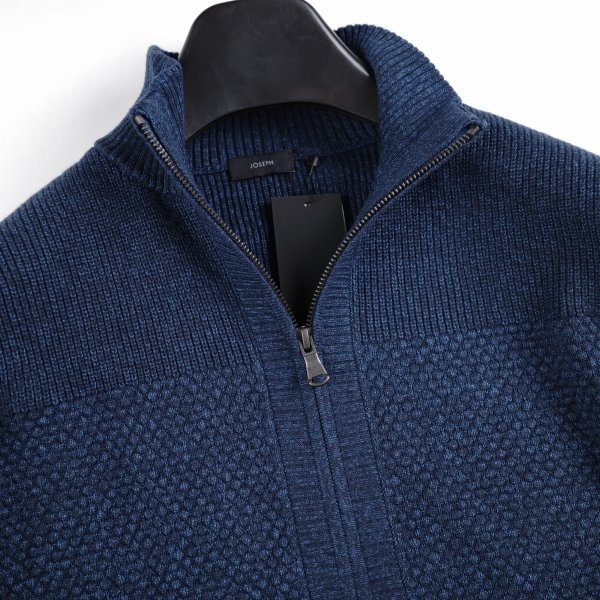 新品1円~★定価2.7万 JOSEPH HOMME ジョセフ メンズ 長袖 シルクバルキーハニカム ジップアップ ニット 46 M ネイビー 紺 本物◆5765◆