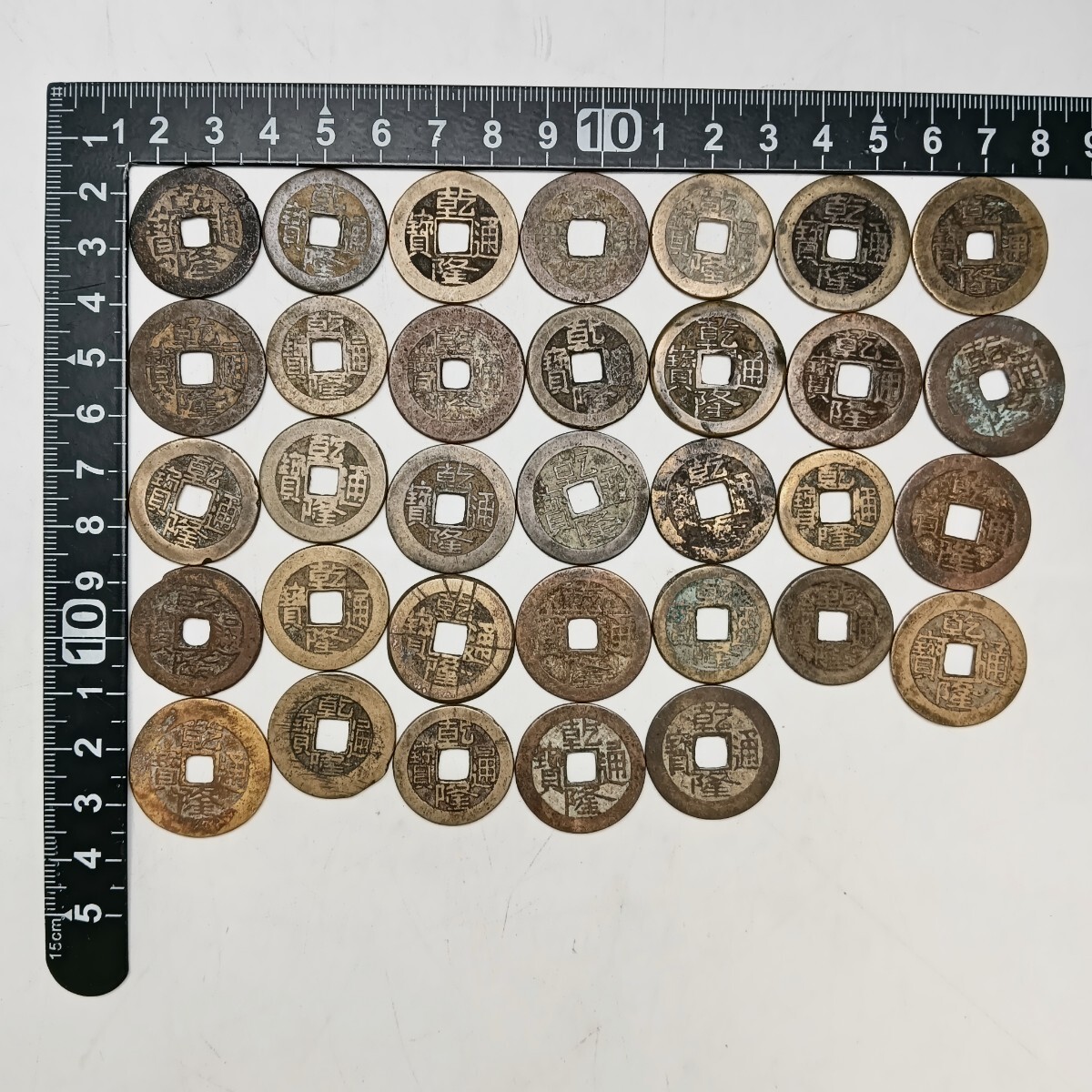 Product name: 【A4136】中国古銭 清朝銭 乾隆通宝 満文 銅銭 渡来銭 穴銭 コイン 骨董品 33枚まとめ 総重量約129.6g