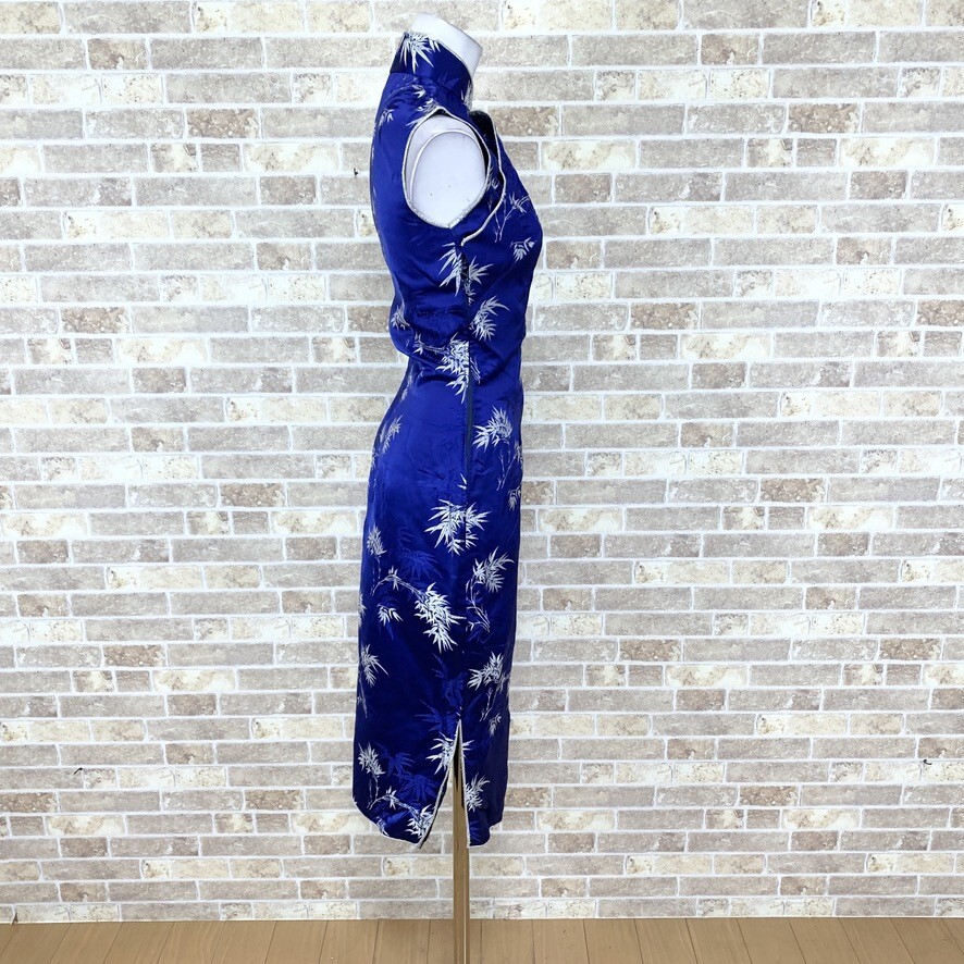 Product name: 1円 チャイナドレス 袖無しロングワンピース 青系柄 裏地有 カラードレス キャバドレ 発表会 フォーマル 中古15029